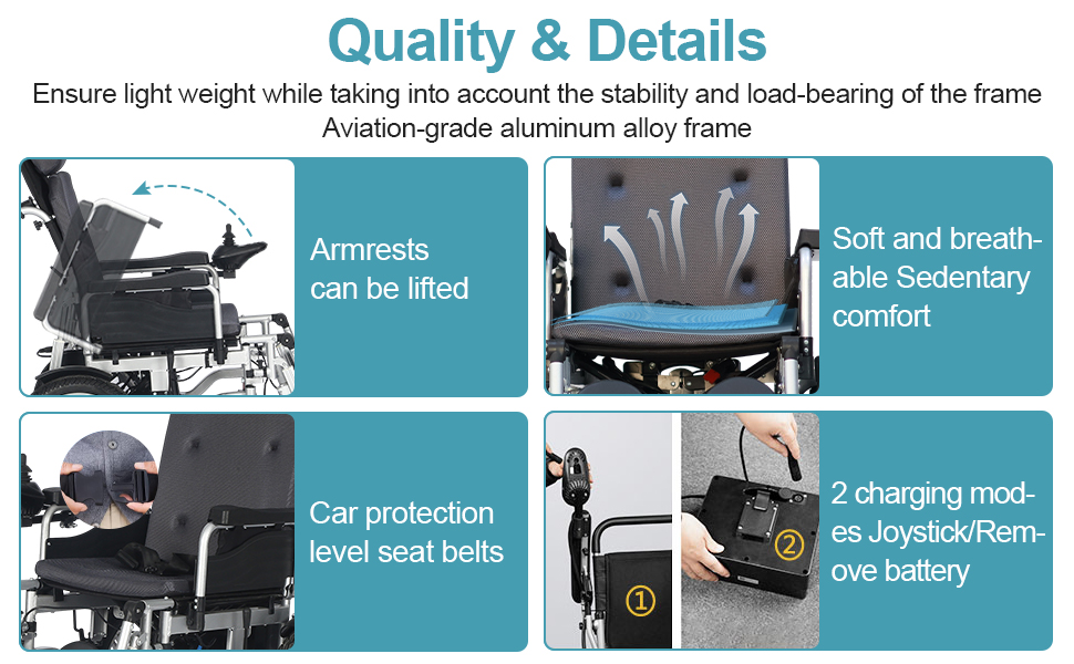 Its foldable steel frame, flip-up armrests, and removable high backrest make it practical for transport and everyday use. Ideal for individuals who cannot stand for long periods or need all-day comfort.